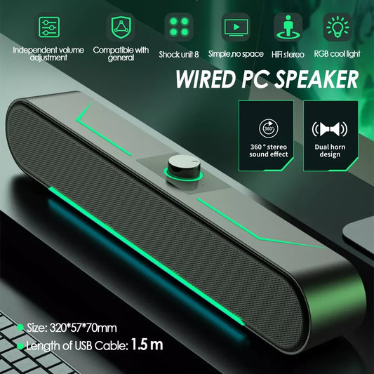 USB Powered Wired LED Light Speakers Computer Speakers for Desktop PC Laptop